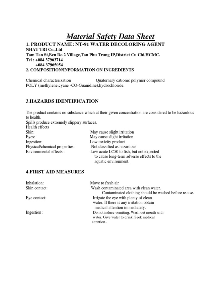 BC Guanidine Hydrochloride MSDS Author GBiosciences Subject MSDS (Material Safety Data Sheet) Keywords MSDS, Material Safety Data Sheet Created DateMATERIAL SAFETY DATA SHEET on 1 GUANIDINE HYDROCHLORIDE 1 CHEMICAL PRODUCT AND COMPANY IDENTIFICATION MSDS Name Guanidine hydrochloride Synonyms None Company Identification Sisco Research Laboratories Pvt Ltd Andheri (East), Mumbai – 400 099 Tel 91 22 2687 2601 Fax 91 22 2687 41 Website wwwsrlchemcomMolecular Formula C 8 H 10 ClN 3 O 2 Melting Point 285 °C (dec) (lit) MSDS Chinese USA Flash Point 21ºC N (4Carboxyphenyl)guanidine hydrochloride structure